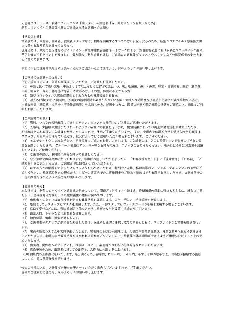 感染症対策についてのガイドラインを併せてご案内しておりますので、ご一読の上ご来場ください。