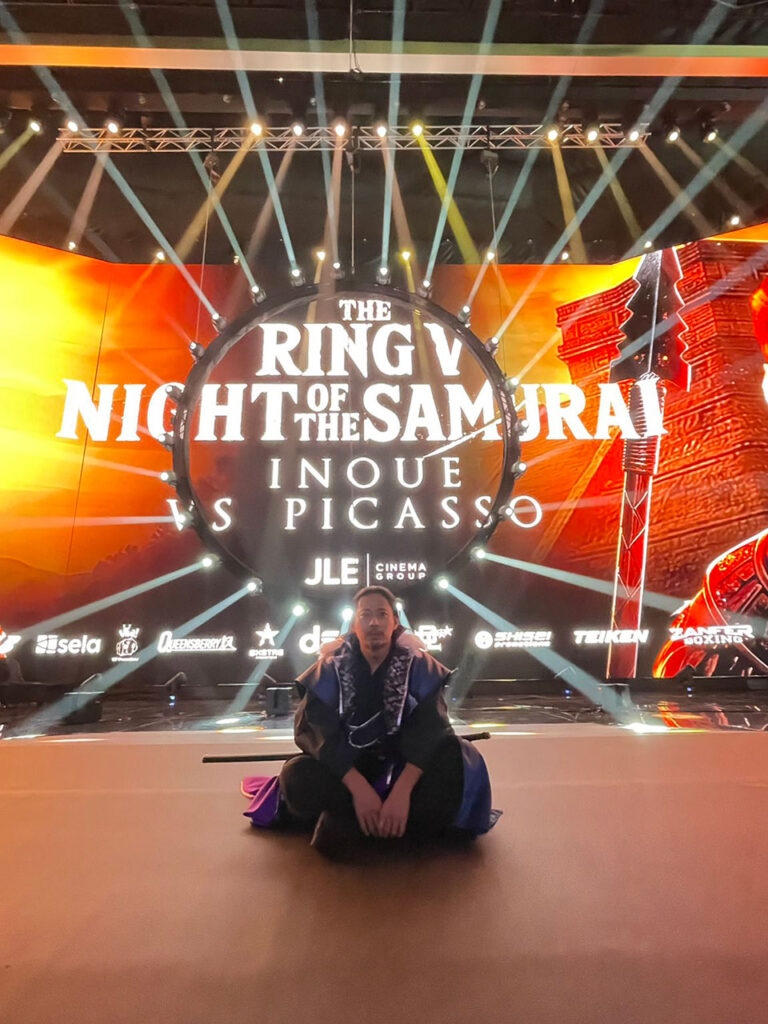 今回のボクシングイベントの公式タイトルは「THE RING V: NIGHT OF THE SAMURAI」。対戦相手はメキシコのピカソ選手。街のあちこちにイベント看板が並び、空気そのものが熱気を帯びていました。