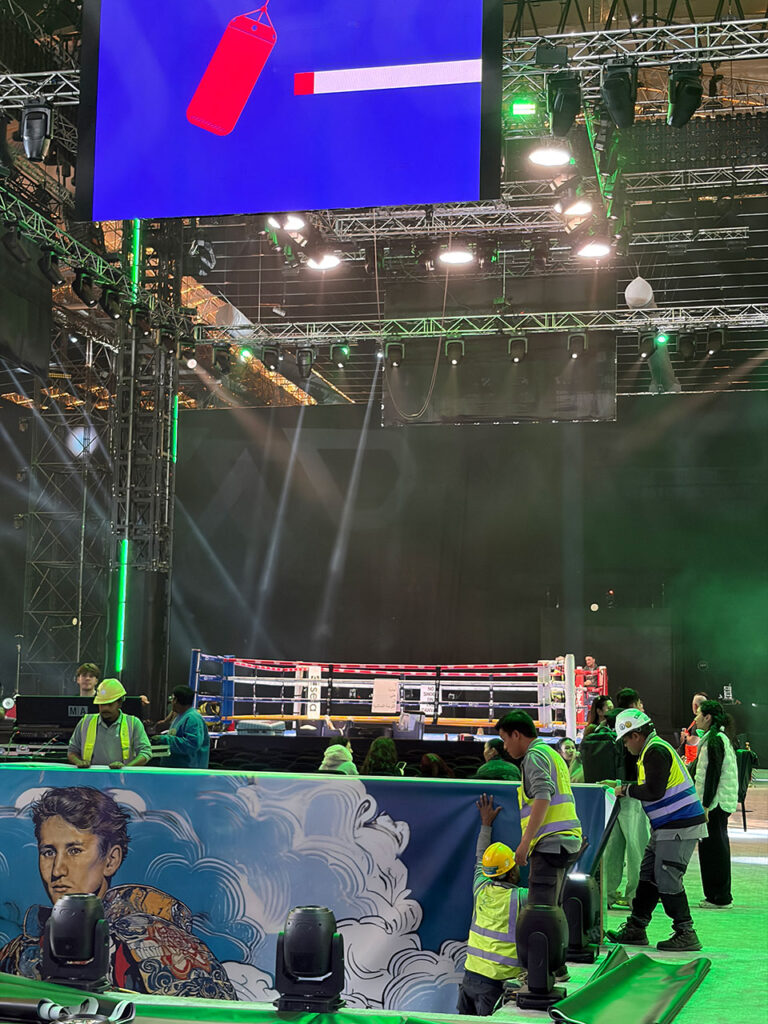 本番当日。私たちの出番は「15時頃になる予定」とだけ知らされていました。ボクシングの大会は試合結果や進行状況によって時間が大きく前後します。直前まで確定しないことも珍しくありません。
