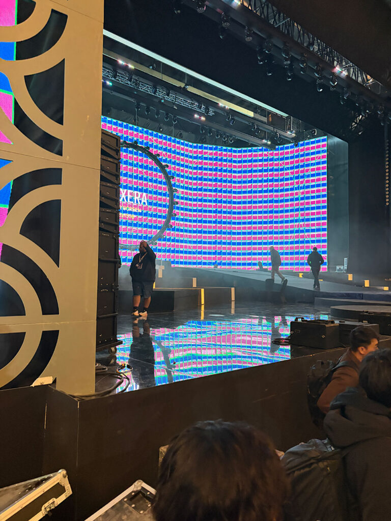 ほどなくバスが到着し、再び会場へ。到着すると、前日よりセットがさらに仕上がっていました。