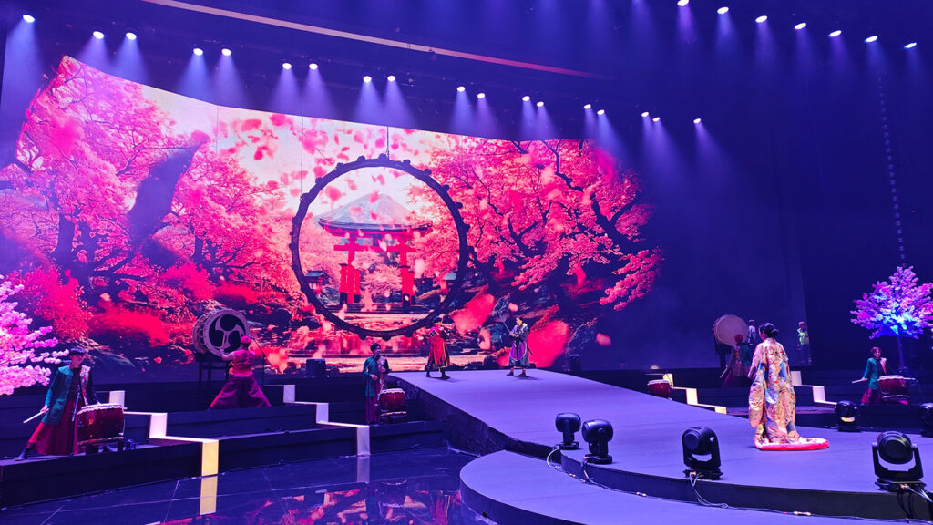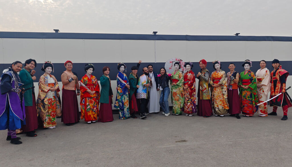 このオープニングショーは、刀屋壱だけで務めるものではなく、和太鼓 彩、そして傘を使ったダンサーたちと一緒に作り上げるものでした。ダンサーチームには日本人がおらず、インドネシア、ロシア、カザフスタンなど多国籍のメンバーで構成されていました。文化もバックグラウンドも異なる人々が、日本文化を表現するショーのために集結していました。