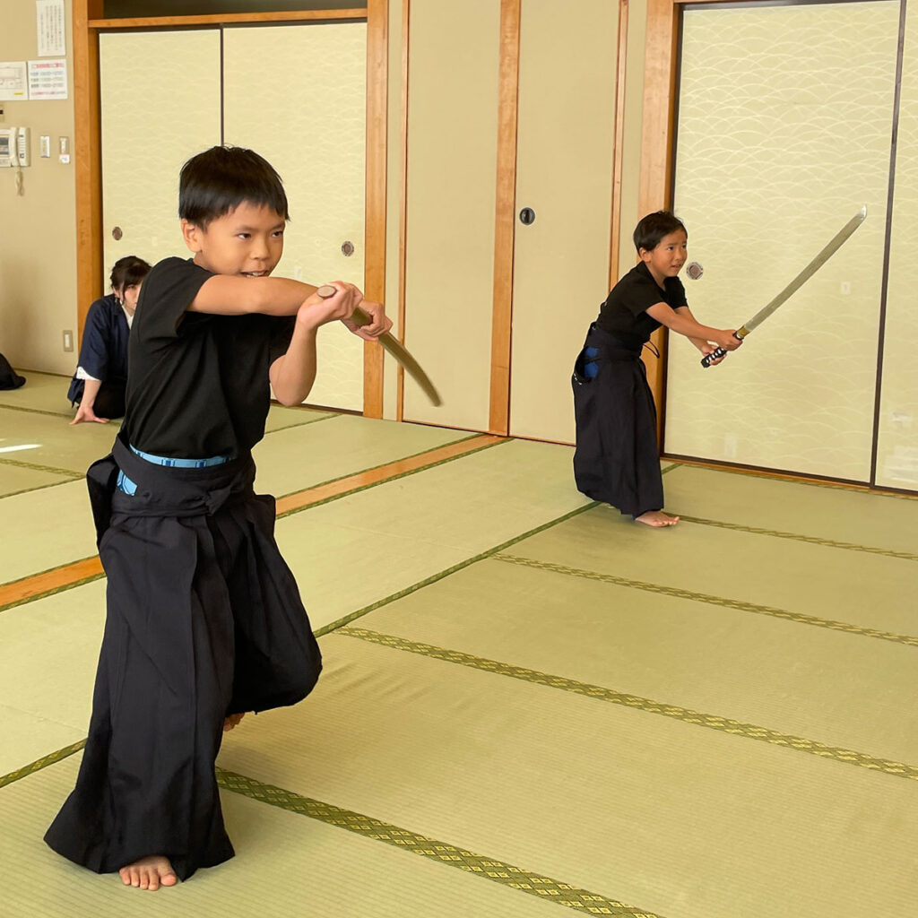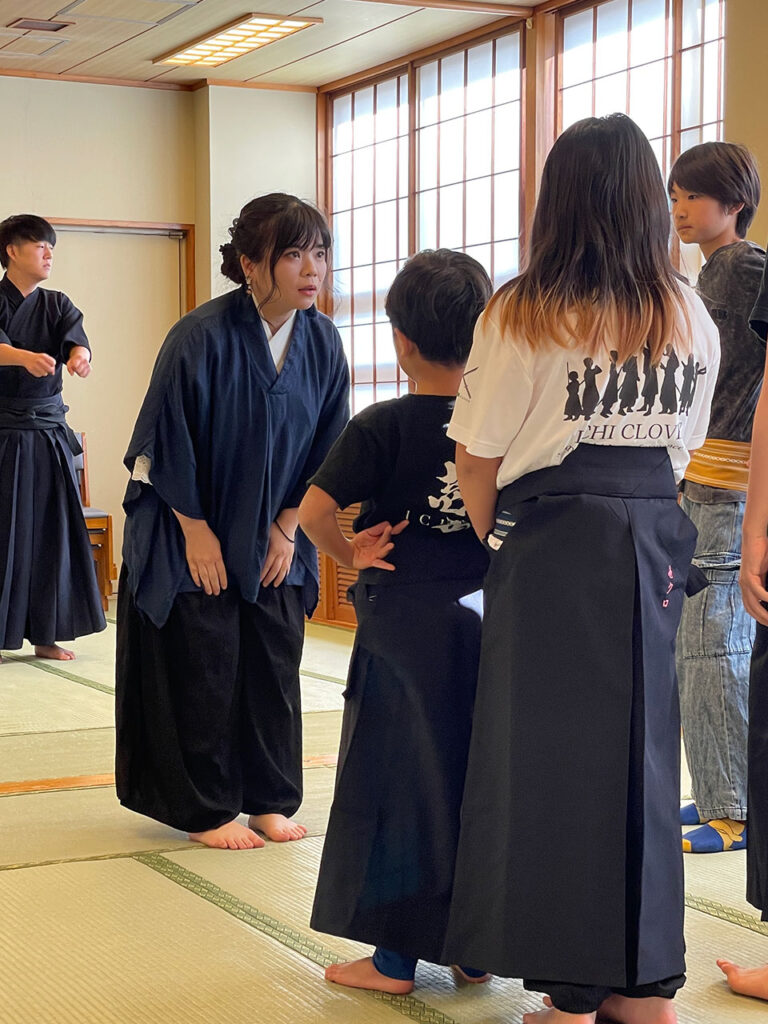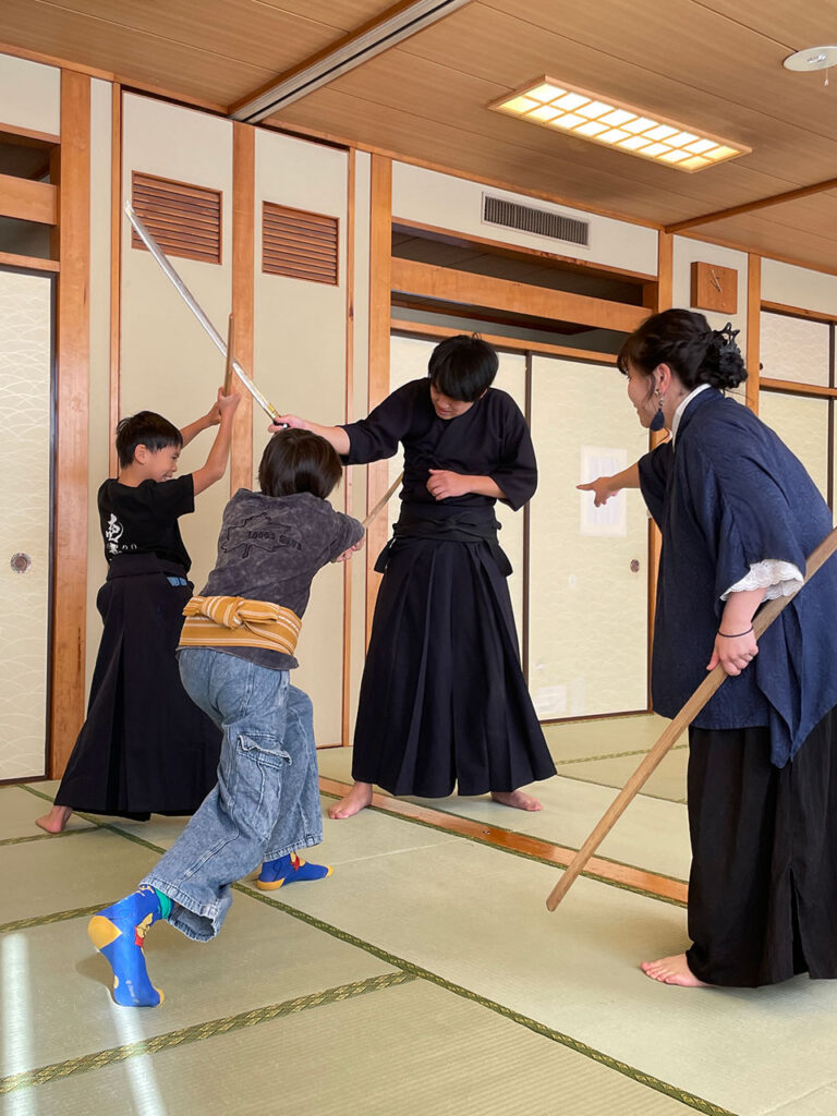 たとえば、ならず者に襲われたとき、強い侍の場合と、弱い侍では当然演技が変わります。場面を想像をしながら動く内容に、キッズたちはずっと集中。自分の番以外でも友だちの動きを真剣に見ていました。