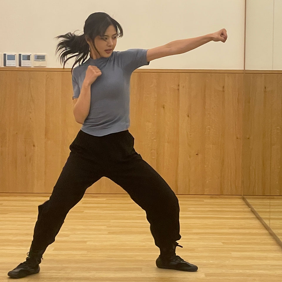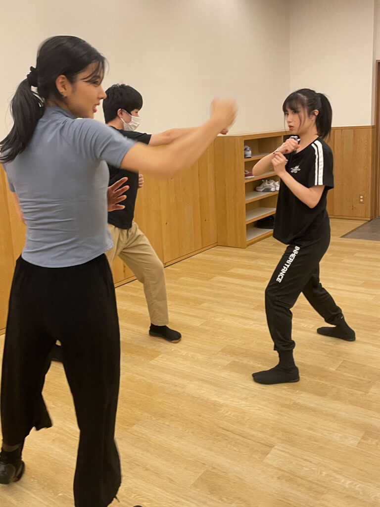 講師のYuriさんは、殺陣パフォーマーであり少林寺拳法の経験者でもあります。実際に強さを身につけた上でアクションを指導できる数少ない存在です。